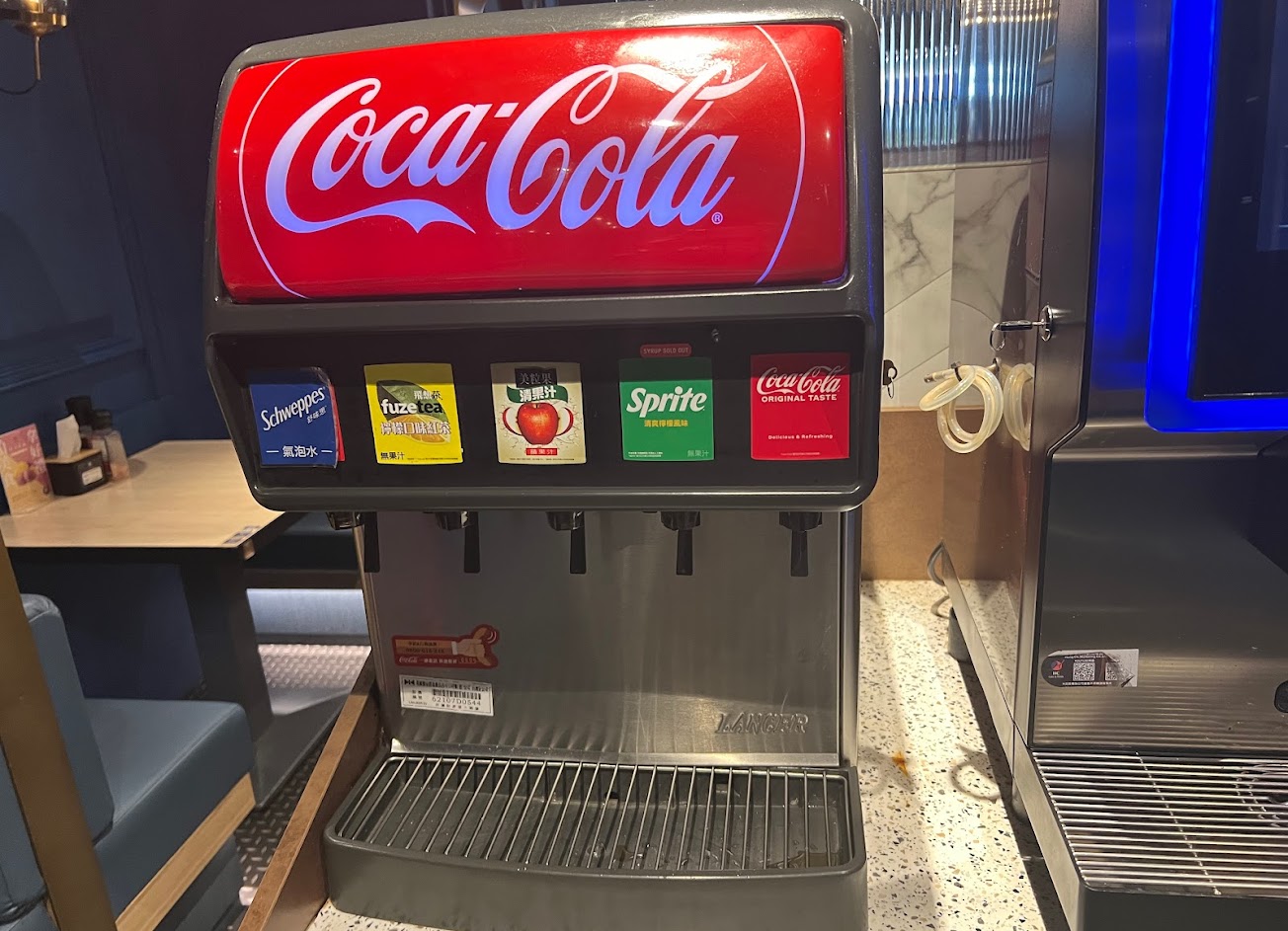 自助吧就是飲料機和兩種湯跟一台咖啡機。 店員都很親切有禮貌。