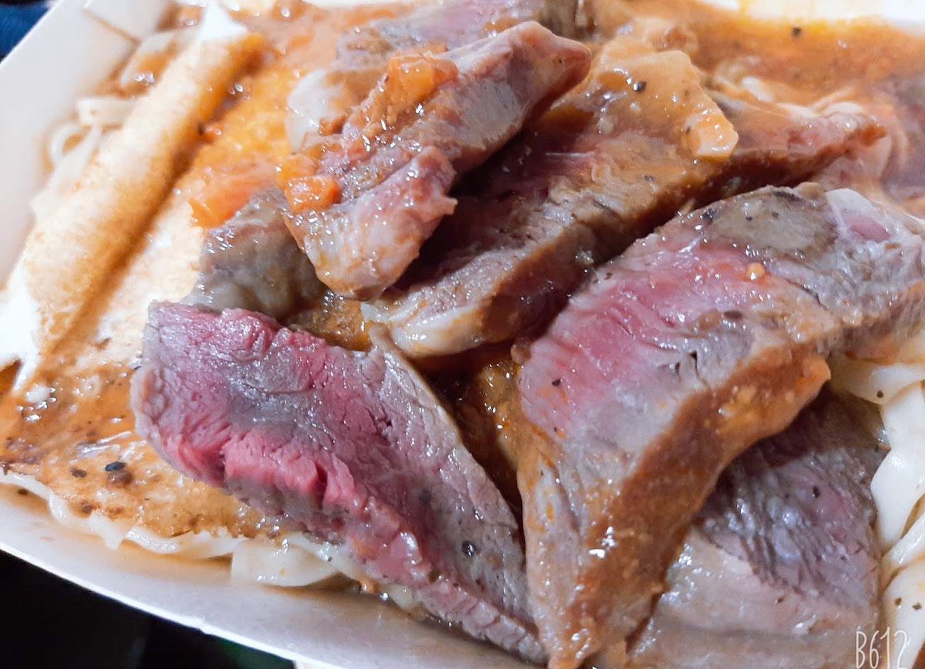 CP值爆表的平價牛排,肉質紮實、麵條彈Q(獨特的麵條口感超越一般的麵店);附贈爆漿麵包、紅茶、和料多到爆的玉米濃湯。在台北市區可以吃到150元的全套牛排,簡直是超值划算。