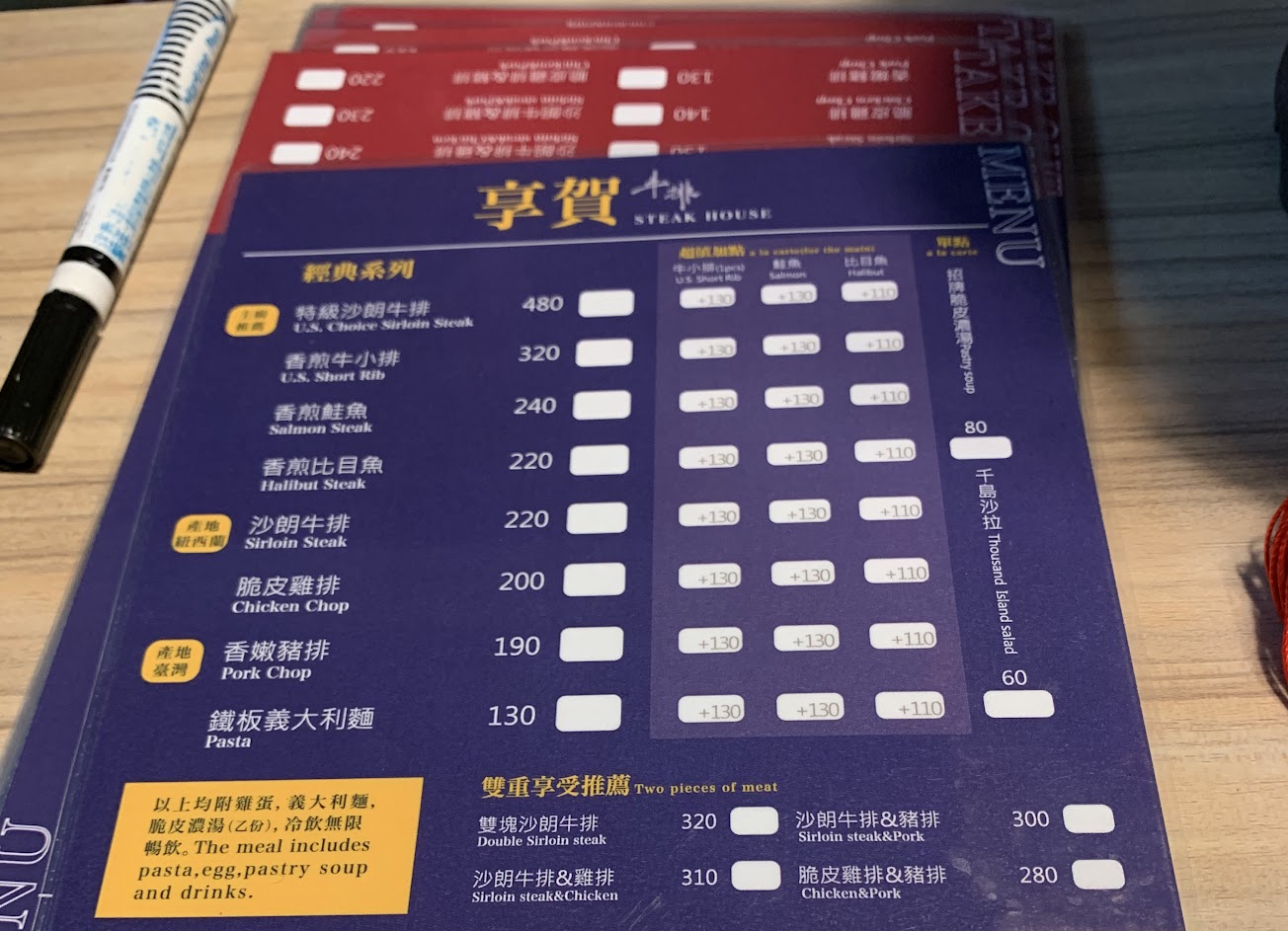 享賀牛排是一間平價又好吃的牛排館 在北市找不到了…….用餐環境優(礙於目前疫情) 老闆手藝好 老闆娘溫柔招呼 …..吃了還會再想吃 可先電話預約點餐