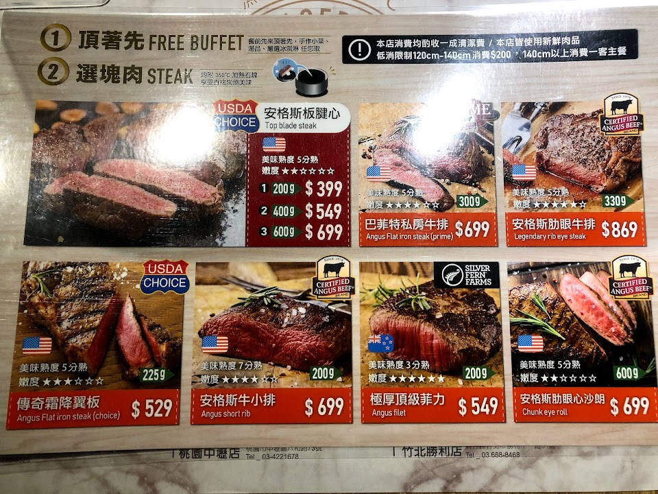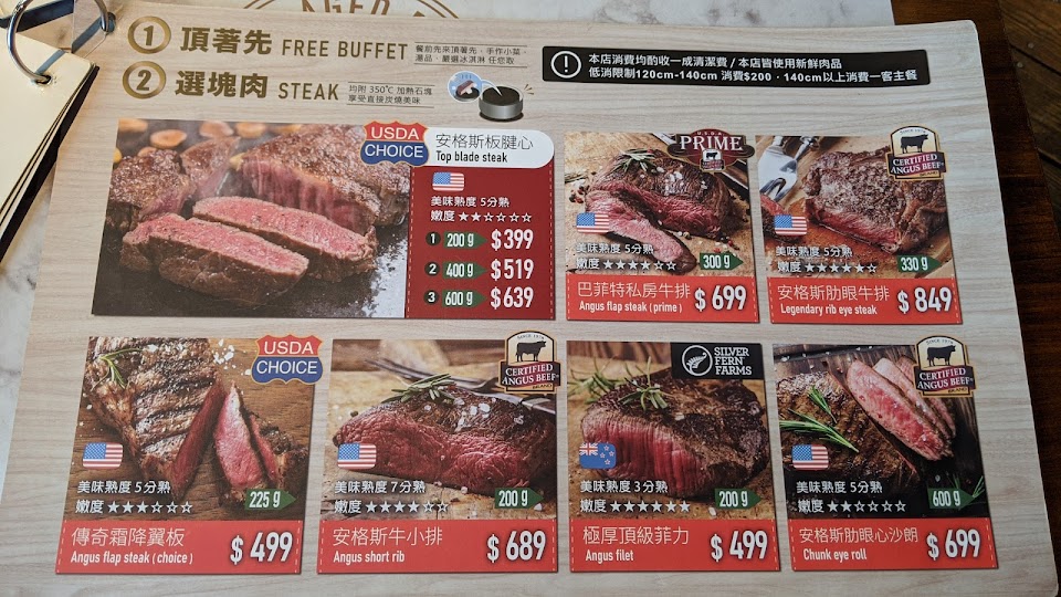 肉質 口感都很棒…剛上桌時的3分熟+一個可以自己選擇熟度作用的小熱石 在旁(熱度不夠時跟服務員反應會更換熱的)濃湯有2種 玉米濃湯&牛肉羅宋湯有牛肉塊味道很棒香濃,烤香蒜麵,包生菜沙拉佐凱薩醬,餐後咖啡選擇類型多樣,搭配冰淇淋…讓人覺得這價格值得…