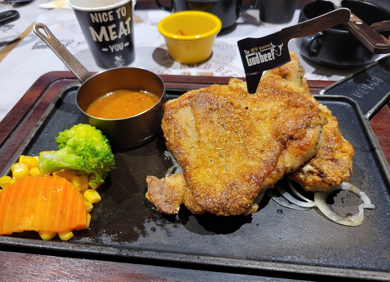 新鮮好吃,附餐供應番茄牛肉湯濃郁,玉米濃湯、飲料、冰淇淋口味都不錯,醃蘿蔔和泡菜解膩,想吃肉就想到TGB很牛,推~