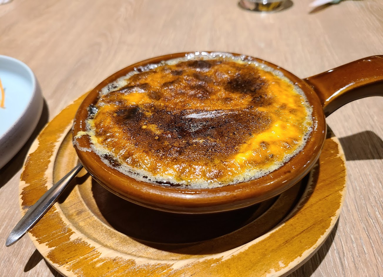 1680的雙人套餐只有一份甜點,想必就是桌上有公告客人評論即送禮,才會有那麼多評論及好評 1.伊比利豬排完全沒香氣,還用了重口味的牛排醬蓋肉味,且滿滿的肥肉。。。 2.蟹黃燉飯有點腥味,不是新鮮蟹黃味 3.pizza還不錯 烤田螺也蠻對我的胃口 但結論還是。。。 我又被谷歌的五星好評及評論給騙來了。。。 因為不值得我特地坐計程車來回 建議來就點pizza和田螺吧