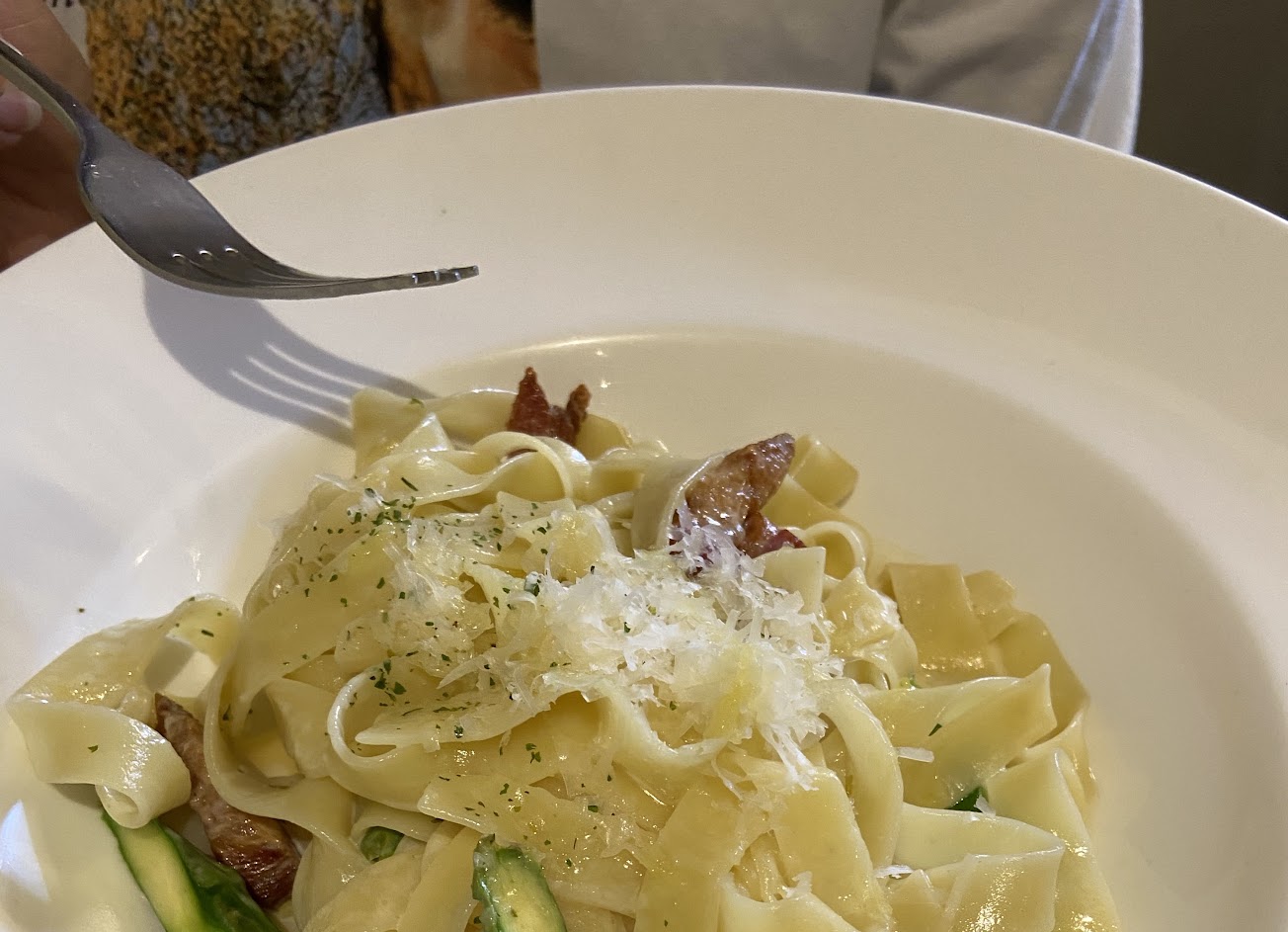 松阪豬細扁麵、起司蘆荀培根麵,都不錯吃,還有絕對不能少的酥脆麵包