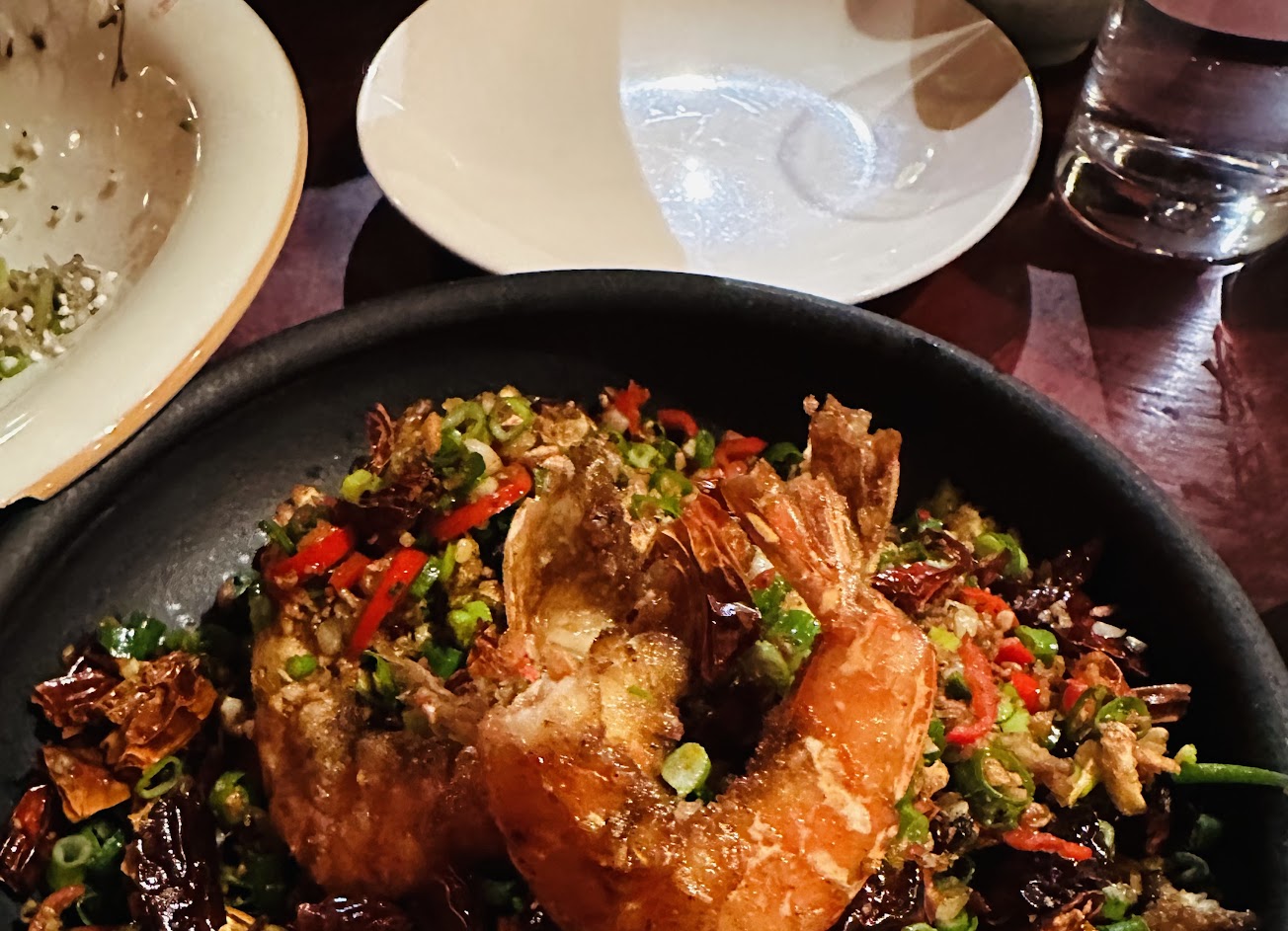 酒好喝,餐點部分滿敷衍的…避風塘是以與蒜頭、蔥段、豆豉、辣椒和香茅混合而成的醬料一起”爆炒”而成,他們家的避風塘中卷基本上就是炸中卷旁邊有配料而已,其他菜色的調味很多都很不到位…金莎蝦球有油耗味,建議來喝酒就好