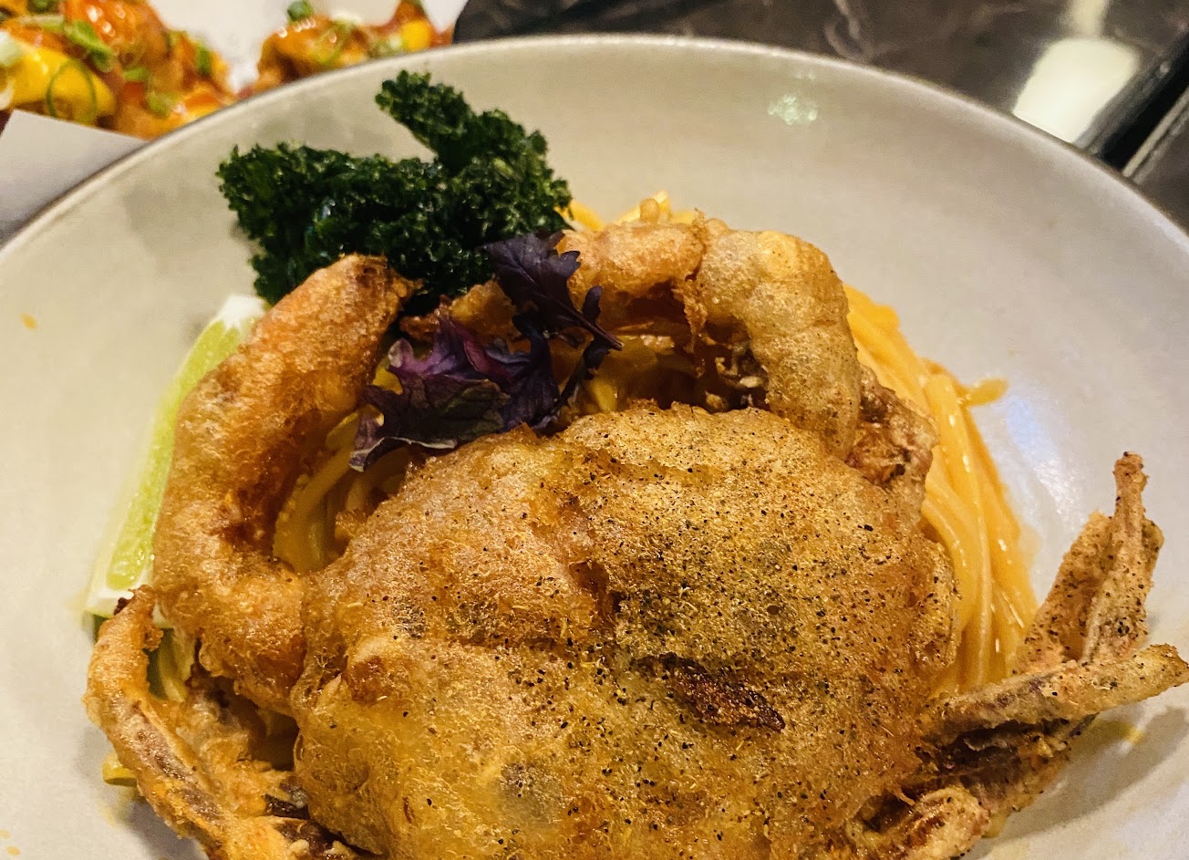 ?酥炸軟殼蟹辣椒細扁麵 $460