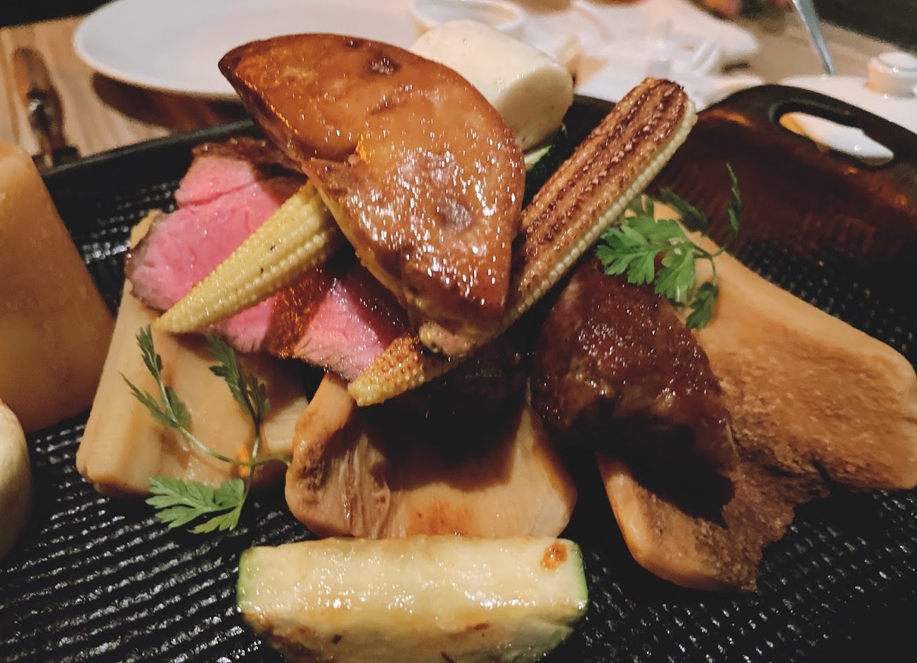 食物是真的很好吃,餐酒館的料理算是很驚艷。滿滿的原型食材,擺盤視覺效果很優,季節時蔬又搭配的到位。