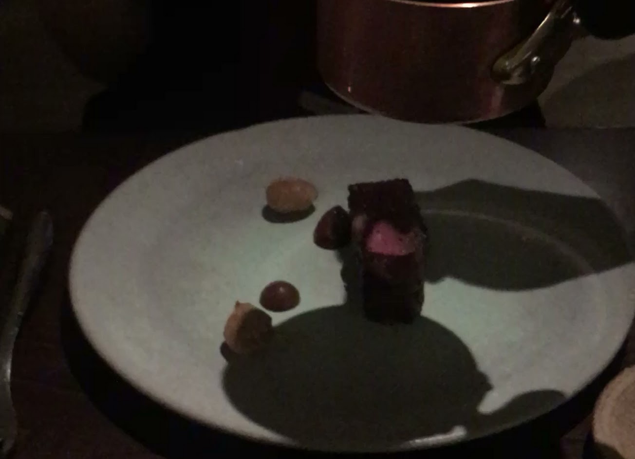 ?和牛牛頰|炸鷹嘴豆|炙韮菜|牛肉醬汁|番紅花龍眼柚子泥|鷹嘴豆泥|醃漬芥末籽