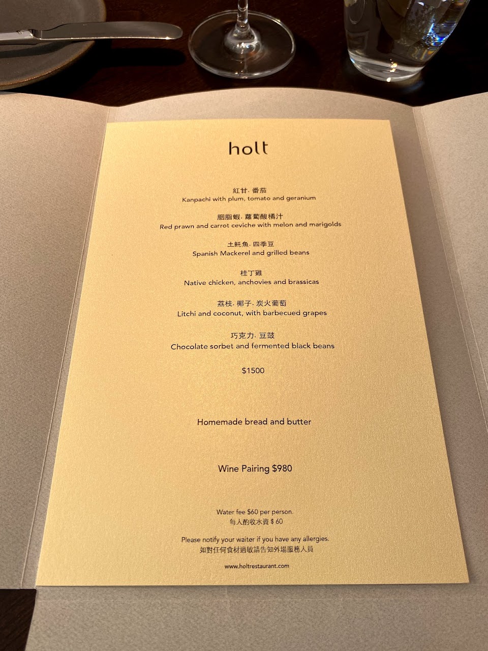 現在午、晚餐都是一樣的套餐,可以享用Holt最完整的食物巡禮。