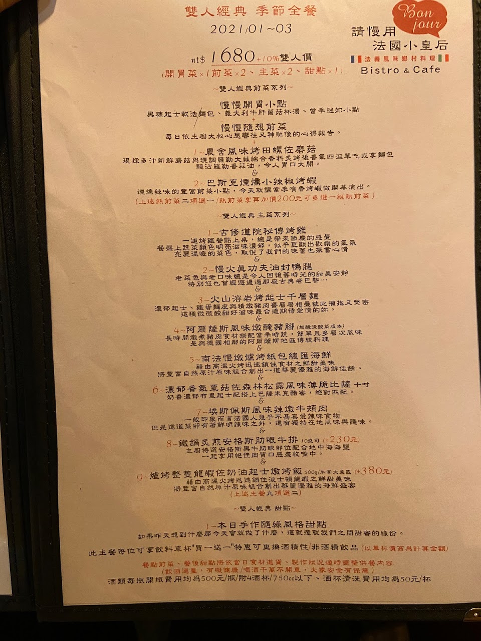 2024最新在地推薦餐廳的菜單_Bon Jour 請慢用 法國小皇后的菜單、圖片