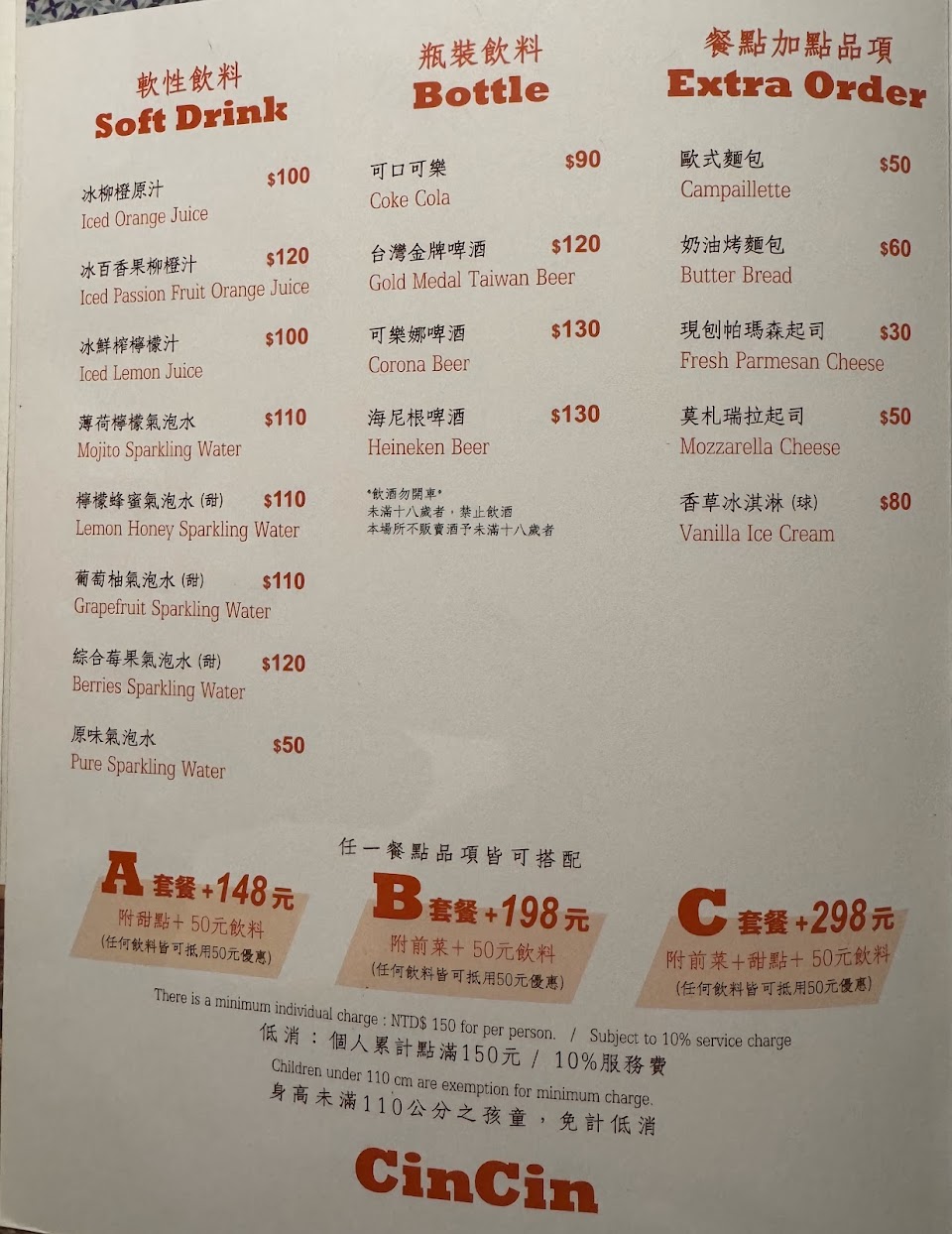 低消150,加10趴服務費,中午用餐兩小時,如果是下午時段來的話,這裡的氣氛會讓人很享受