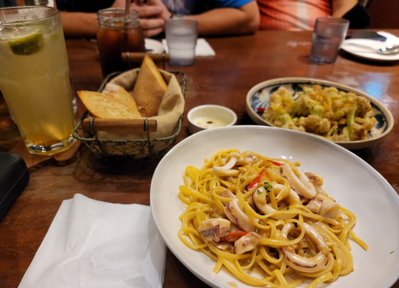 義大利麵整體來說口味都算好吃,海鮮食材也都很新鮮。現流海鮮蕃茄麵的海鮮料有點少,不像名稱那麼豐富的感覺;手釣透抽有點辣,口味比較重一些;明太子海鮮細圓麵的奶醬明顯,適合喜歡白醬的人;松露蟹膏奶醬麵反而吃不出奶醬味,蟹膏也偏少,拌完麵之後幾乎吃不出蟹膏的味道。