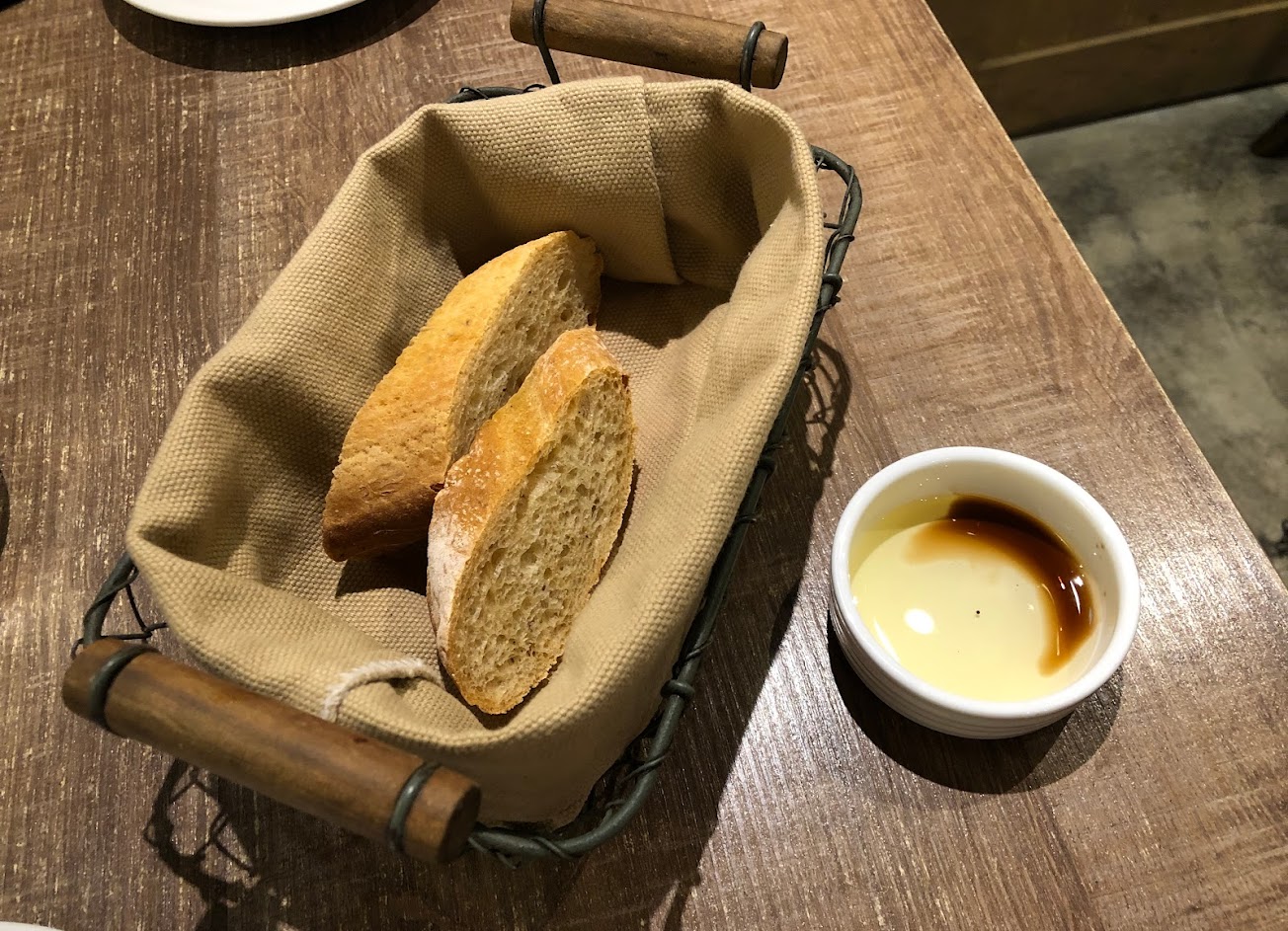 餐前麵包外酥內嫩,搭配油醋,香氣十足。