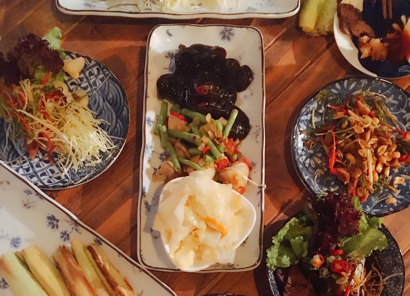 有涼拌的薑汁番茄、皮蛋豆腐,也有滷味的滷牛肉、牛三寶、豆干、腱子肉等等,還有燒烤的豬腳、玉米筍,甚至大腸包小腸、味噌烏龍湯麵都有。點完一輪滿滿的一桌真得很有古早味,很像陪爸爸去外頭跟朋友喝酒的錯覺(大誤)。