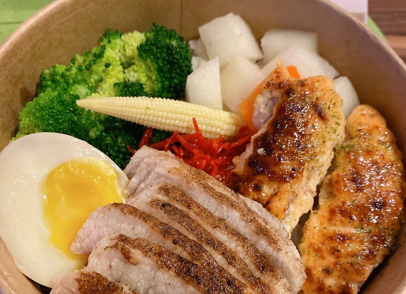 我吃了他們的碗裡有 4 種肉。味道鮮美而且很飽。我特別喜歡豬肉和鱈魚子雞。