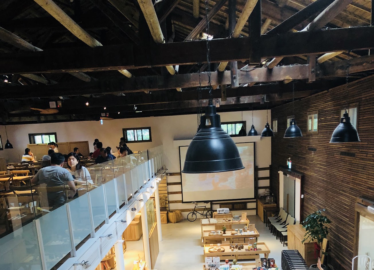穀倉改建的氛圍不錯,再地商品也不少,二樓餐點還可以,安靜的空間!