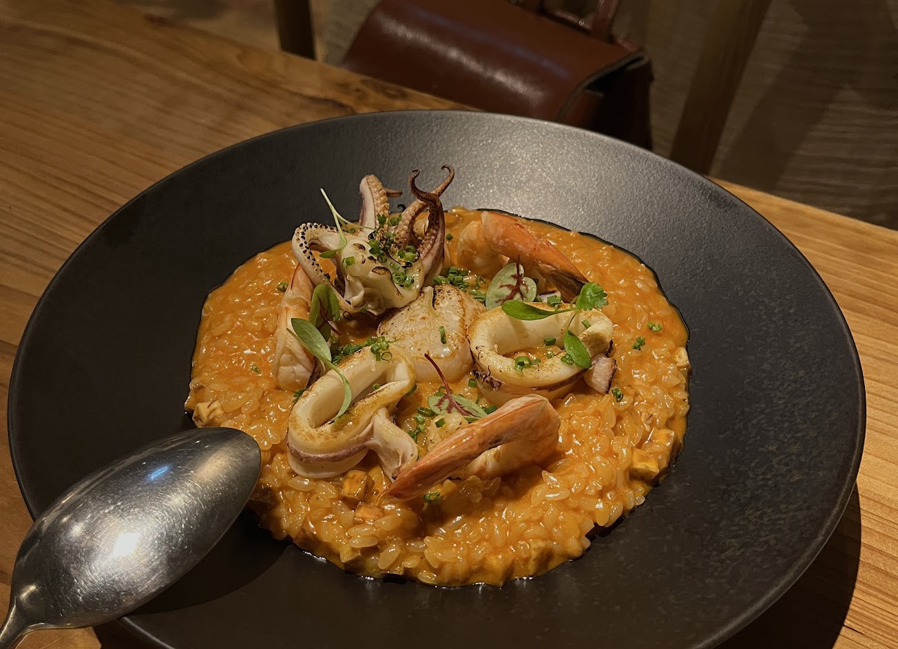 吃過最喜歡的松露的薯條之一!倉糧豆乳雞表皮酥脆肉質鮮嫩,豆乳醬味道濃郁搭配炸雞好吃!主廚精選濃湯為刈菜蛤蠣雞湯,三樣食材的味道份量搭配的恰到好處,香又好喝。烤鴨胸水準之上,鴨皮酥脆,七分熟鴨肉軟嫩柔甜,旁邊的烤蔬菜更不只是簡單的配角,非常好吃。海鮮燉飯反而被其他道菜的優異表現而顯得相較不那麼高調,燉飯口口都有海鮮香氣,但較容易膩口,也可能天氣冷的關係,逐漸冷掉比較油膩,天冷建議盡快先吃完。整體表現都令人滿意,期待下次來訪並且將會需提前預訂的餐點。
