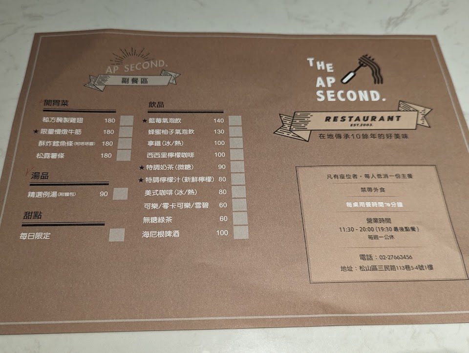 2024最新在地推薦餐廳的菜單_THE AP SECOND(All Pasta)的菜單、圖片