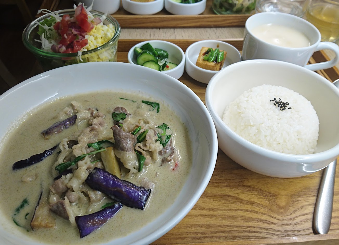 餐點好吃。若需要吃素可以跟店員說,有紅咖哩和綠咖哩選擇,素食部分沒有寫在菜單上。 空間不大,座位和座位之間距離較小。
