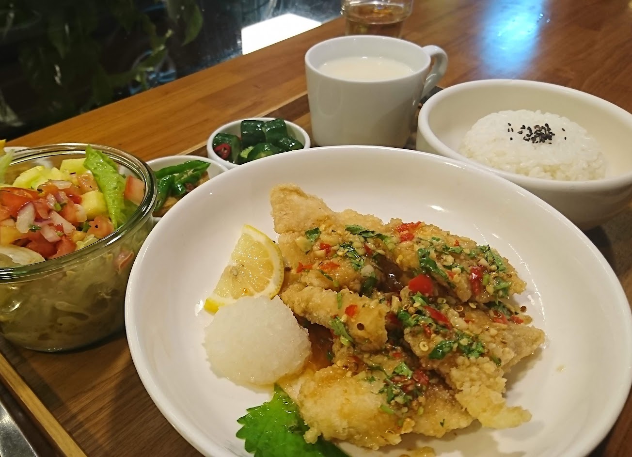 價格中等, 東西新鮮好吃, 沙拉的部分有加很多水果, 玉米濃湯相當好喝, 配菜的部分炸豆腐相當好吃, 飲料有咖啡、綠茶和檸檬水, 如果是一家人來可以去坐和室地板的位置, 可以吃的很自在。
