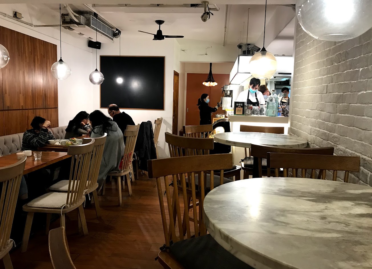 店內的設計簡約、餐點分量剛好、精巧好吃。價位合理,適合聚餐。