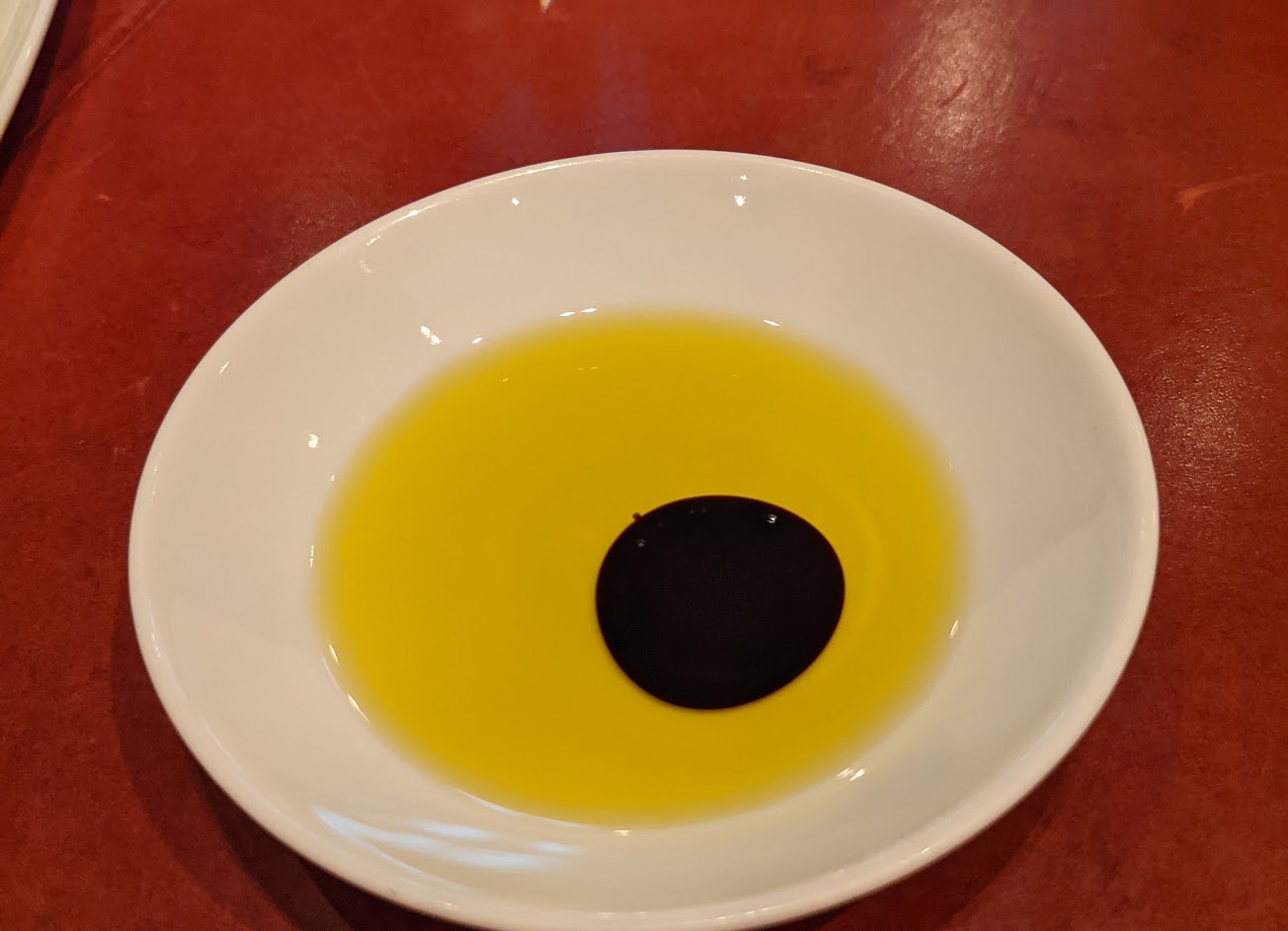 因為入住東方文華、package中附晚餐,選Bencotto. 桌距寬,座位舒服,外場應對不錯。 麵包做的不錯,橄欖油、醋有數種可以自選,品質均不錯,但問外場各從哪個省份來,回答不上來。