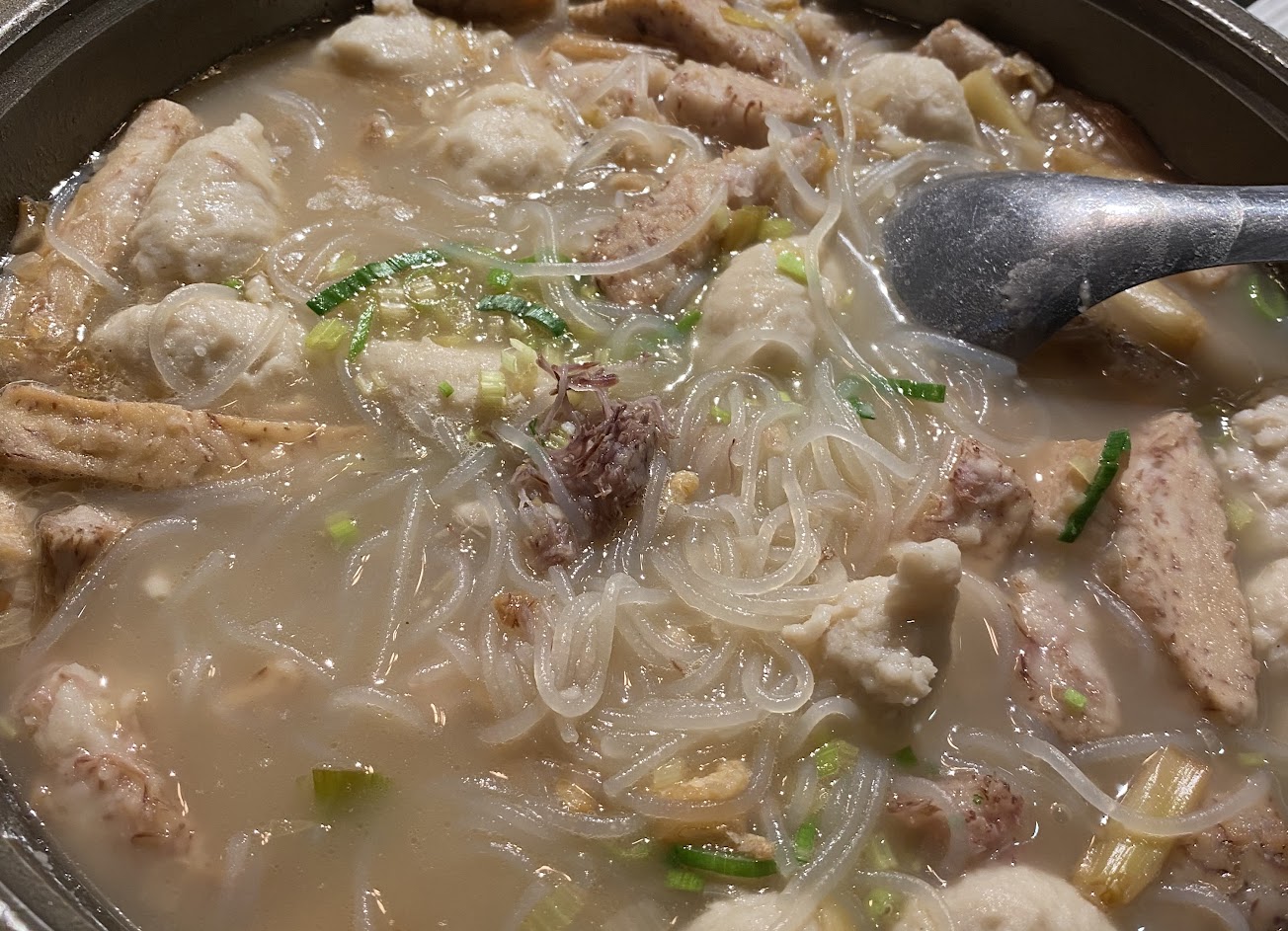 芋頭燉煮至軟爛融入湯頭,米粉滑順口感鬆軟,旗魚丸下好下滿,整鍋cp值很高;芥蘭牛肉肉質軟嫩、微辣非常開胃;客家小炒豆乾、肉絲呈現漂亮金黃色,大量蔥段乾香美味;絲瓜蛤蜊滑嫩鮮甜,融合的湯汁更是精華所在點菜脯蛋是煎至焦香蓬鬆是最後完美的配菜。