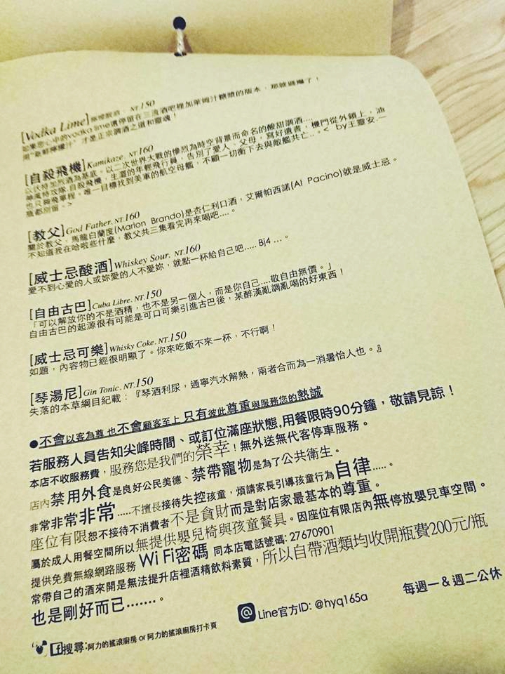 聽說在阿力的時期可說是家庭用餐聚會的親子餐廳,老闆一改以前的走向:成人的酒食空間,相信老闆對於品味有自己的堅持。 服務 內用 餐點類型 晚餐 平均每人消費金額 $1,600-1,800