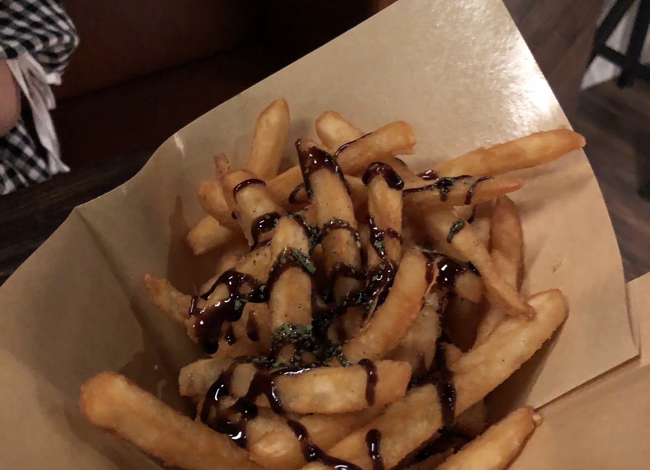 – 炸薯條-蒜味: 爽脆的薯條搭配著些微的生蒜, 帶來些微的清爽, 搭配上葡萄醋醬, 把單一薯條的風味, 再多添了一點酸甜.