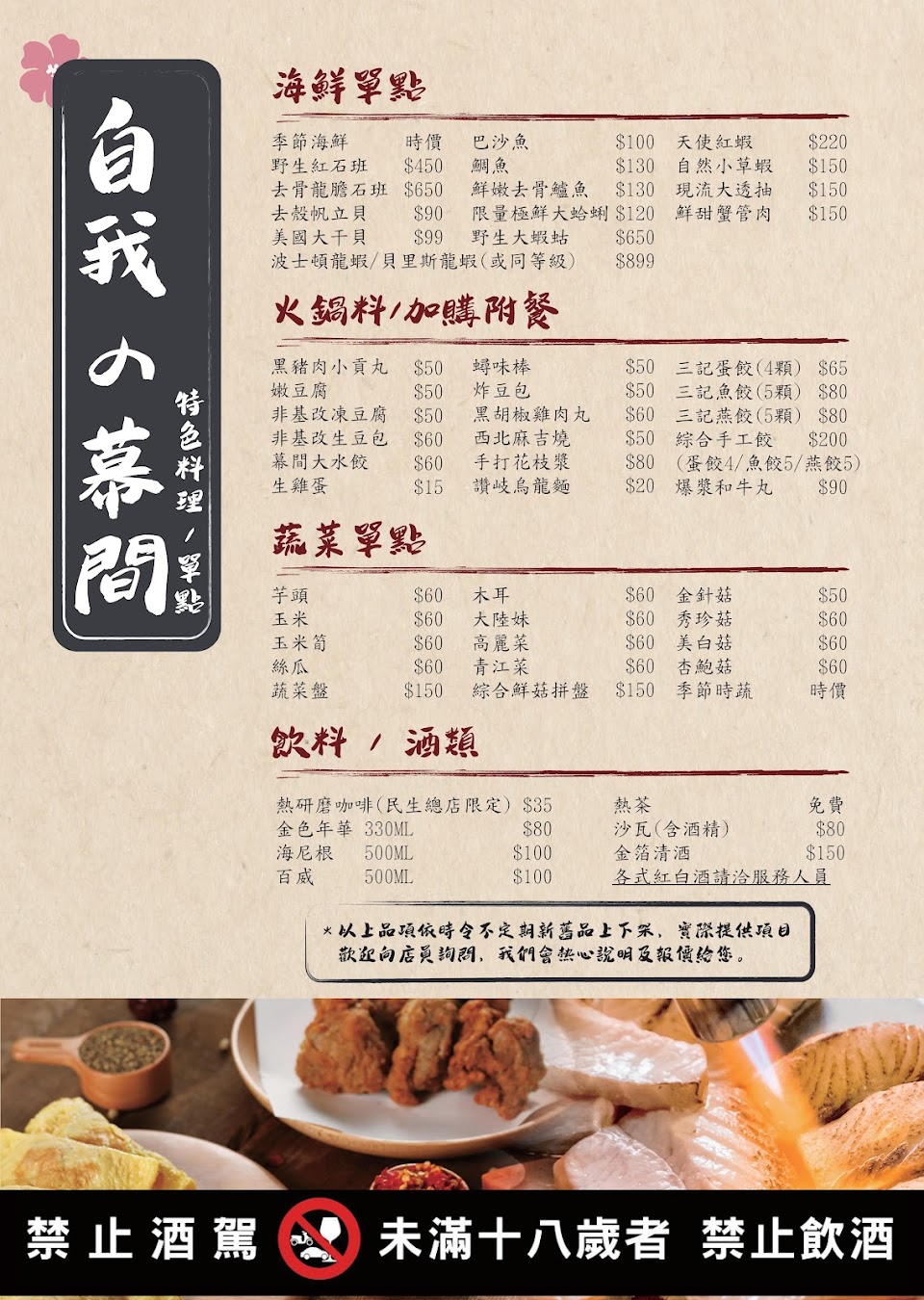 5.副餐沒有白飯,想要點啤酒菜單上的兩種都沒有….