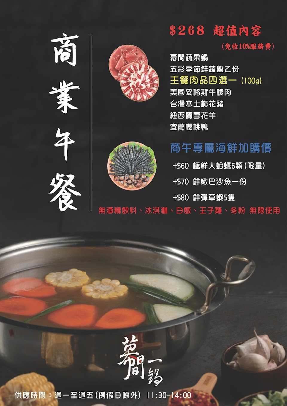 [特色]這一家火鍋最為特別是肉品會先被炙燒後,再放入鍋中煮熟。肉品本身品質就已經不錯,再用直火直接將肉品的油脂香味逼出,但是因為直火時間短,肉質還來不及變老,便停止加熱,而放入鍋中後依據消費者的習慣不同,而決定肉的熟度。蛤蜊是另外一個特色,老闆保證,如果下鍋不開,論顆更換,而且每一顆都有五十元大。菜盤配菜隨機,不過有遇過特色水餃,是高麗菜水餃。如果有點海鮮,會隨附一杯黃金酒,在要煮海鮮前,淋鍋可以去腥。 [服務]服務在人多時會容易塞車,要有點耐心。有提供泰國特色冰淇淋和飲料吧! 服務 內用 餐點類型 午餐 平均每人消費金額 $600-800 餐點:4 服務:3 氣氛:4 建議的餐點 大蛤蜊 特殊餐點 有戰車,相當新鮮