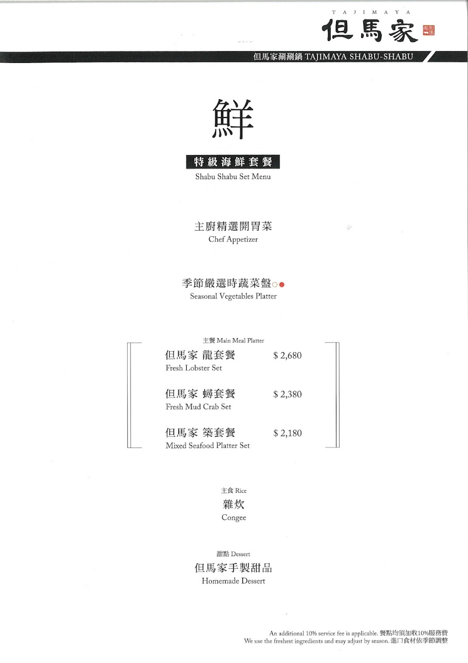 2024最新在地推薦餐廳的菜單_但馬家涮涮鍋二館 TAJIMAYA Shabu Shabu Ⅱ的菜單、圖片