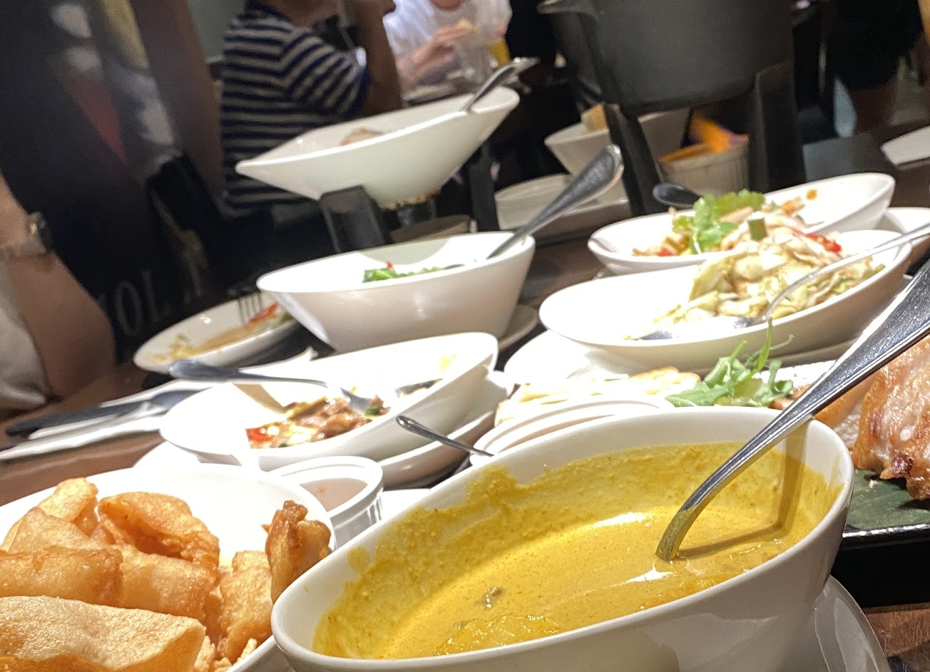 本來是配合朋友交通方便選擇了這附近的餐廳,因而預約此餐廳(第一次來),裝潢服務蠻到位的,招待麵包也好吃,我們五點進來用餐還有招待一人一杯小杯啤酒,加入會員再繼續送小啤酒,餐點的部份,我們點了蝦醬炒飯(好吃 但可能是我們魚露加太多變得偏鹹)、咖哩蝦(蝦有點老 不夠新鮮)、酸辣棒棒腿(有點乾柴,搭配醬吃會好一些),共喝了三杯小啤酒,也飽足了,以上總結—>還不錯?