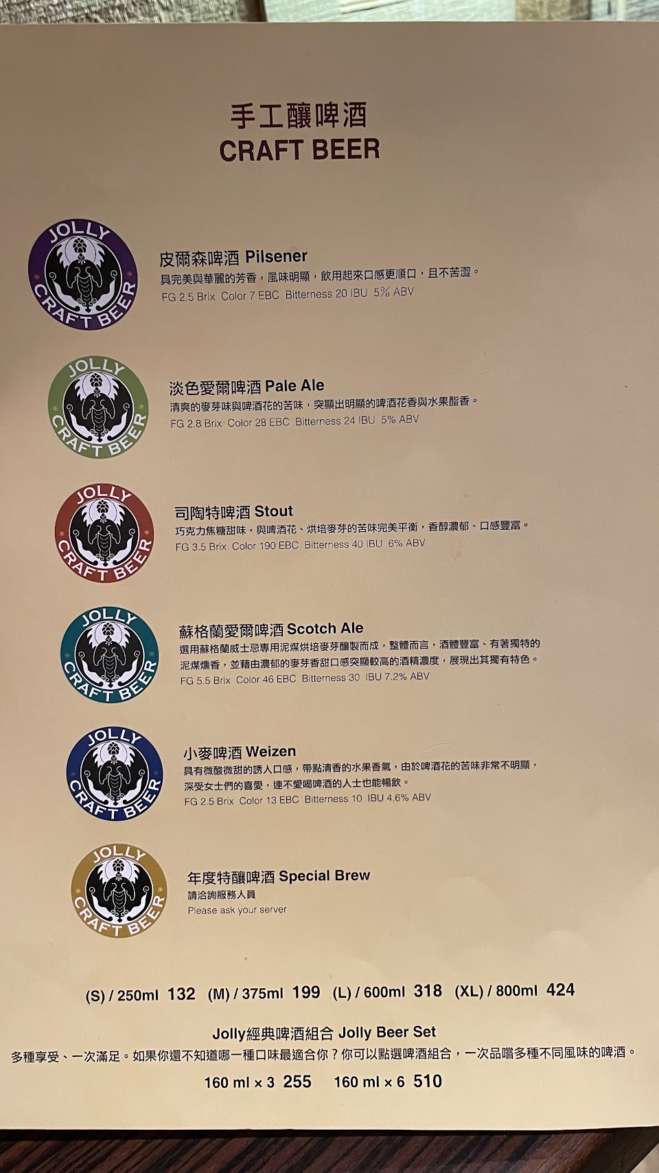 2024最新在地推薦餐廳的菜單_Jolly手工釀啤酒泰食餐廳 慶城店的菜單、圖片