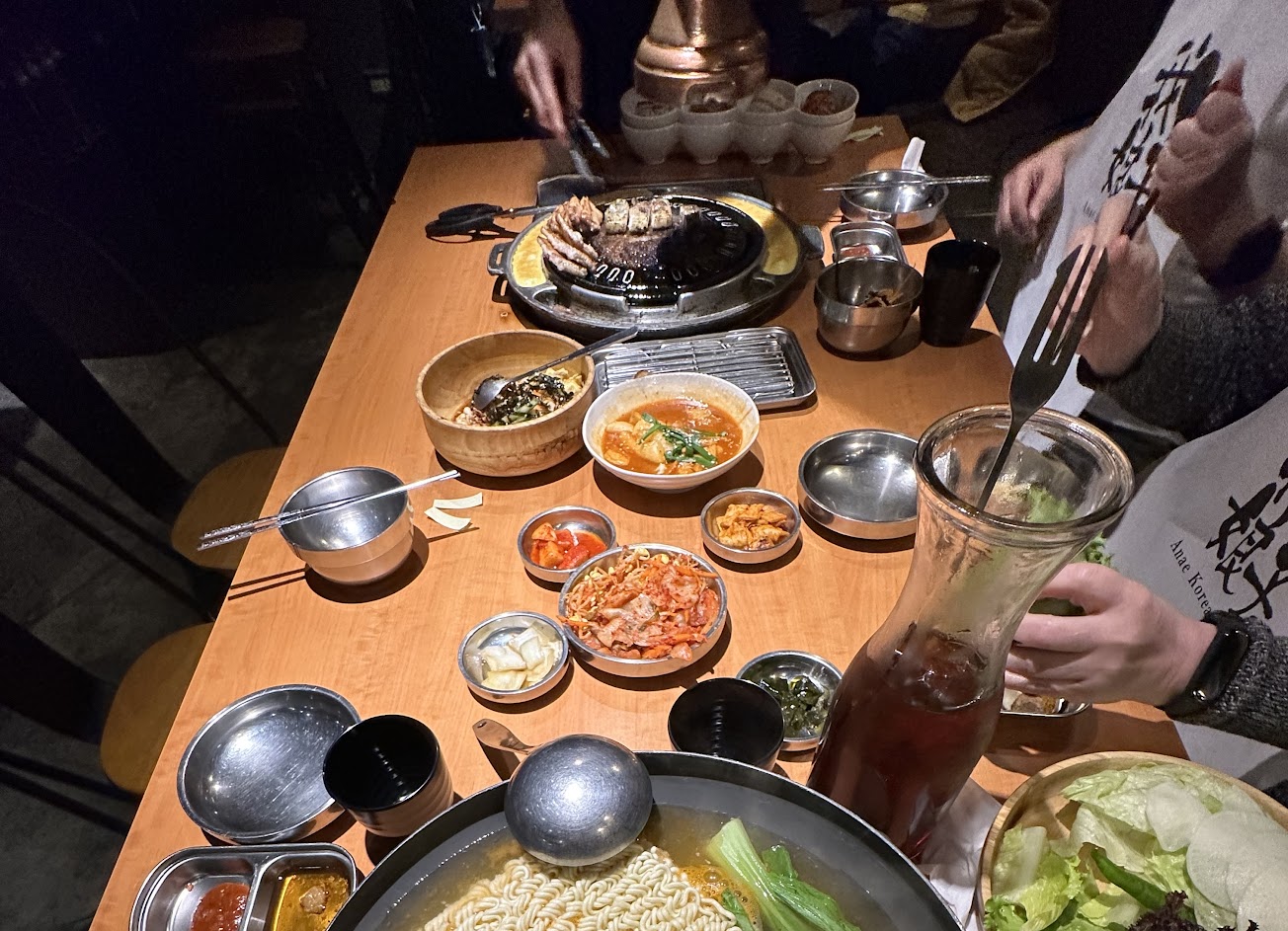 沒有太驚艷,韓式炸雞的肉不多汁,八色烤肉套餐五花肉口味多樣,但吃到後面也無感,海鮮煎餅尚可,但也不屬於太酥脆的版本。