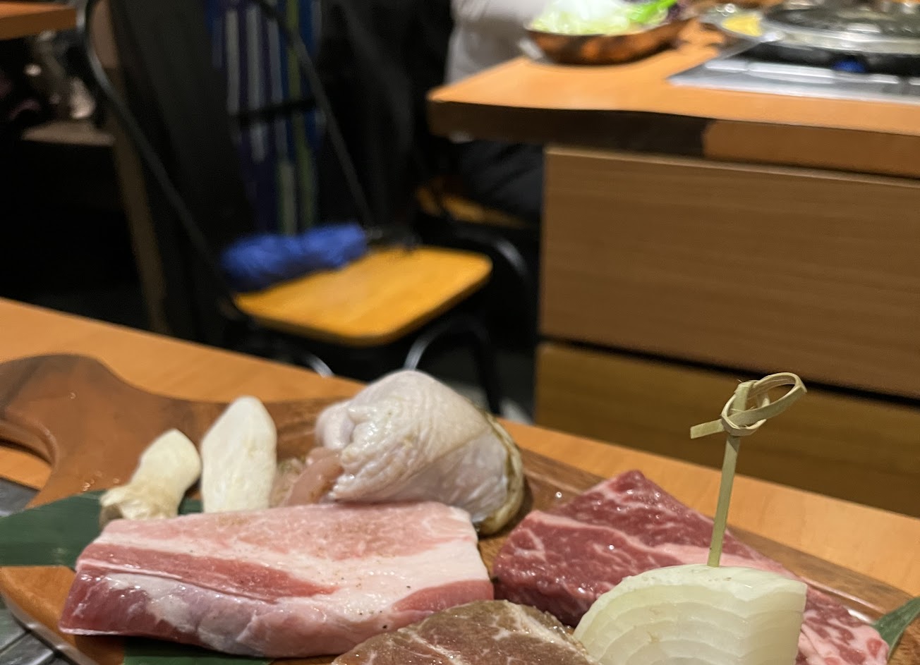桌邊幫烤超加分,可以專心聊天專心吃東西,菜盤只有一盤份量很少,不能續,可加價購買,可刷卡現金,廁所在一樓樓梯口,雖小但有兩間,食物都是比較下飯或是重口味的,建議點有氣泡的飲料比較解膩