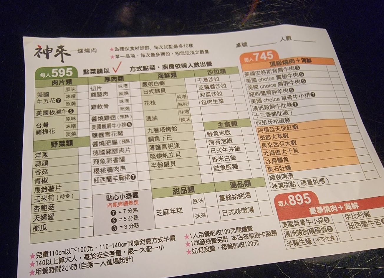 環境算是OK不會很擁擠 服務一級棒 餐盤收的很快 食材還不錯很新鮮 肉質也還可以 會回訪的店 不過這裡星期五.六. 日晚餐都是一樣結果 只有一到四才是598 這裡沒有加一層服務費喔要現金