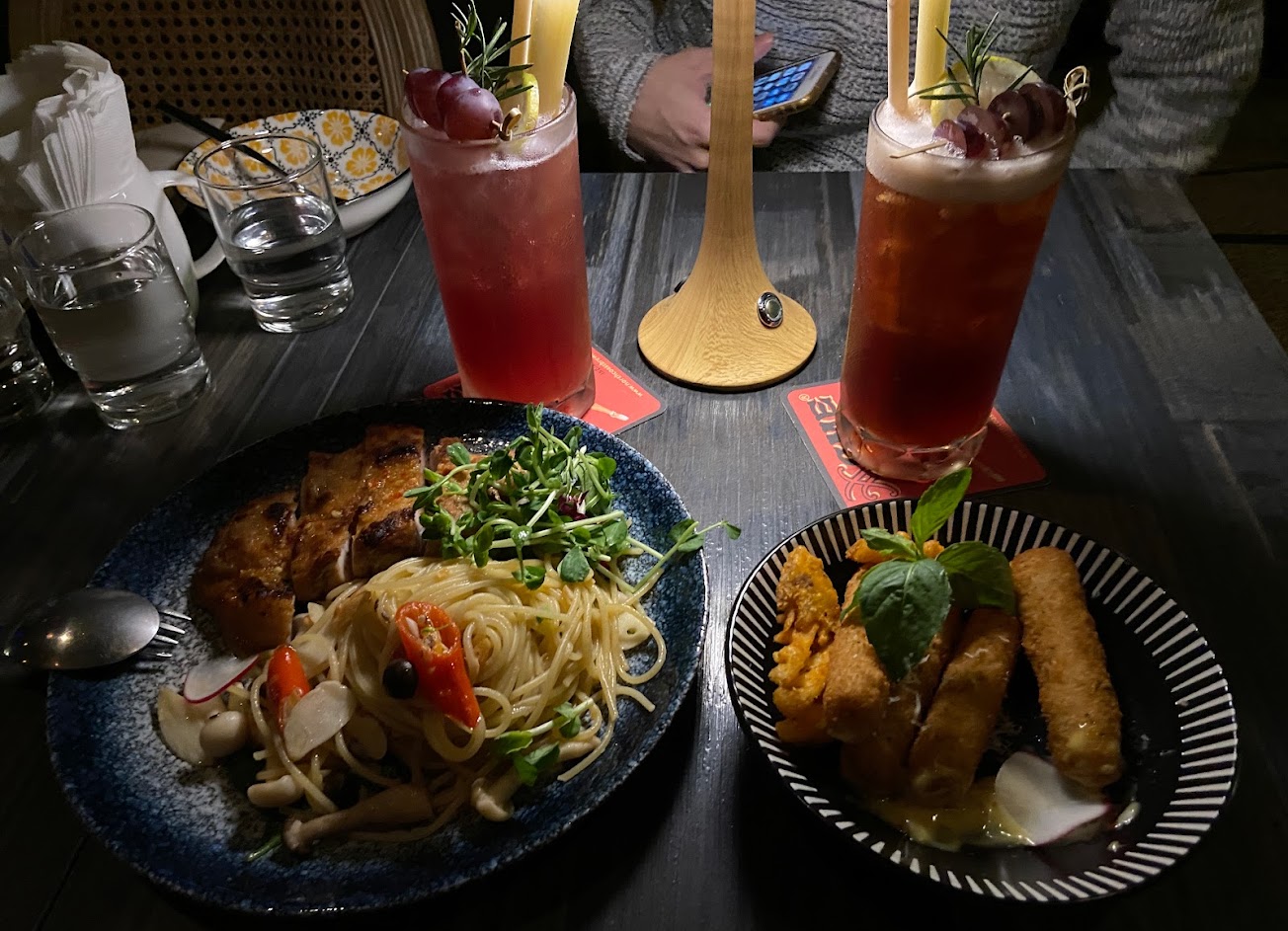 餐點非常好吃 店員十分熱情用心 可以告訴店員你想要的酒 就可以調出菜單上沒有的酒 非常好喝 店內環境也很棒 過了一個開心的夜晚