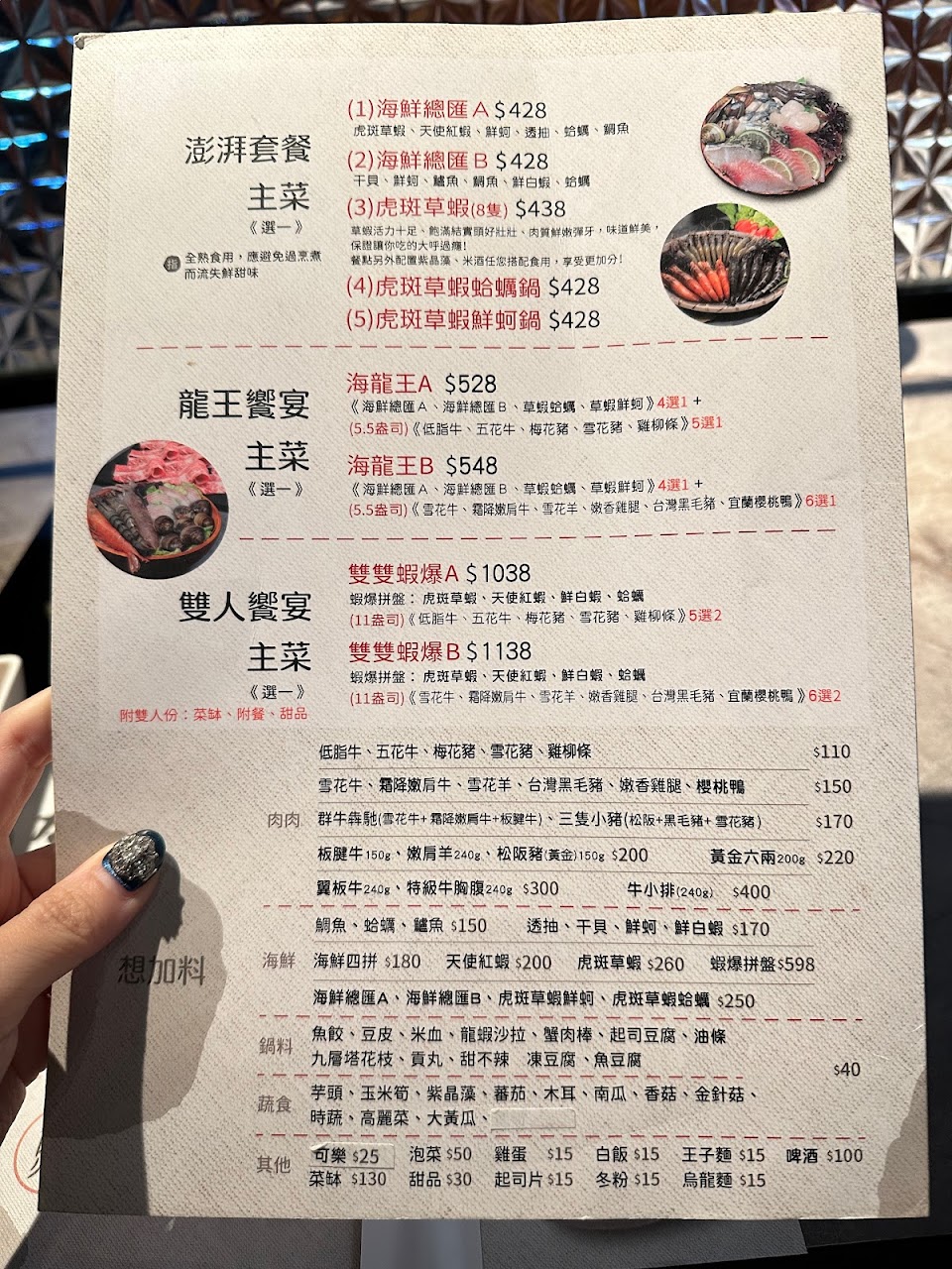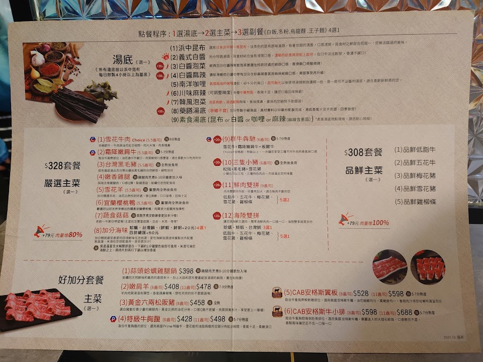餐後甜點 仙草與一小口芋泥 群牛奔馳 雙拼主餐的蛤蜊 海鮮總匯 低脂牛 義式白醬鍋 火鍋 重肉組必點 羊肉奶油鍋 昆布鍋