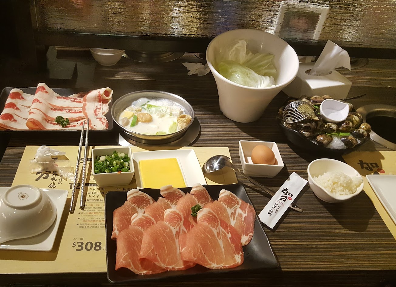 吃了兩次依然最愛白醬,肉片切的不會太薄,口感很好,菜盤份量也十分充足,每鍋的價格都是$308,雖然偏貴一點點點,但十分值得~