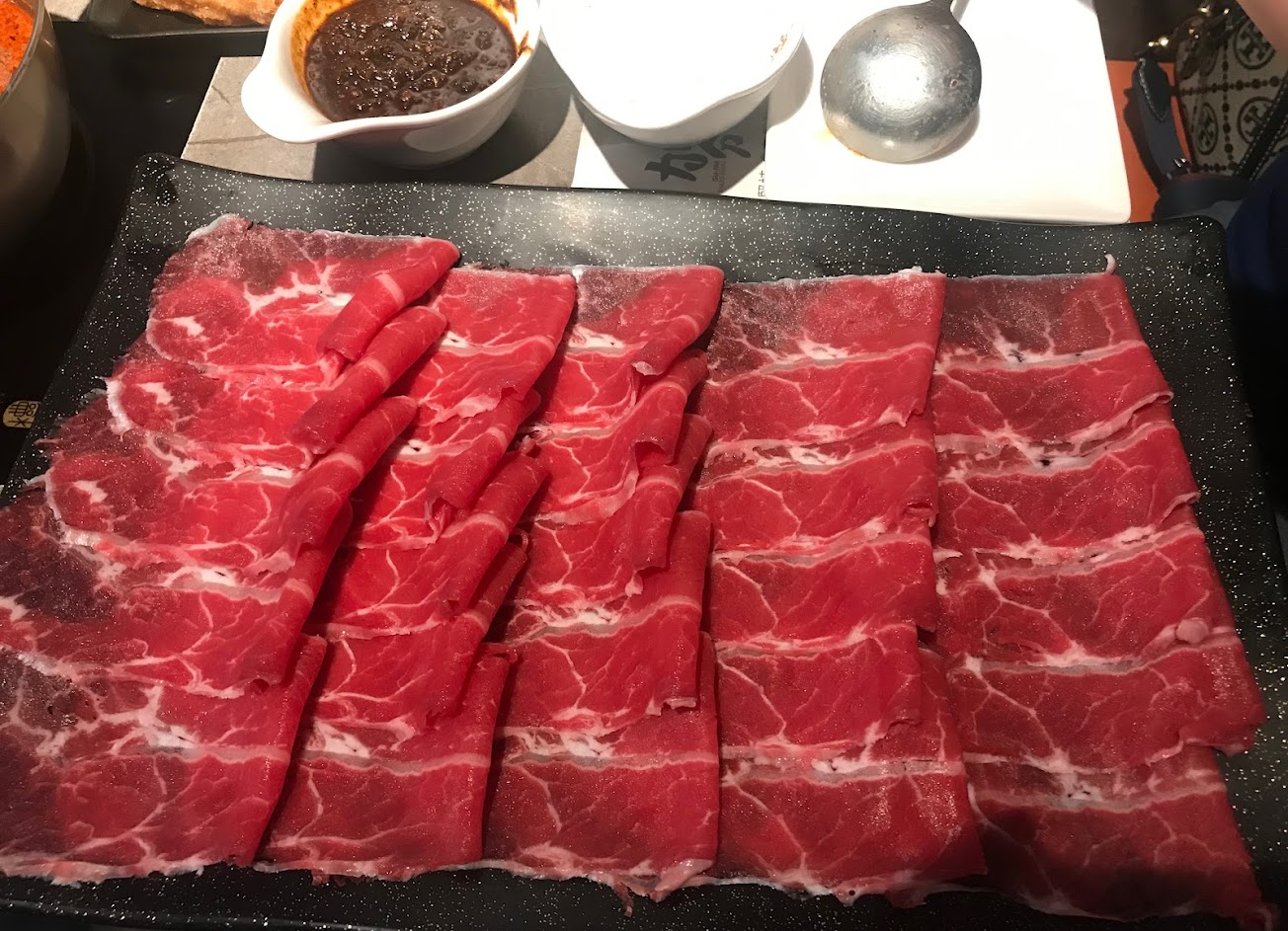 白醬鍋附起司片下去煮很搭,涮肉片如果稍微過久也不至於太老,肉的份量又可以加量,對於男生是好的選擇!