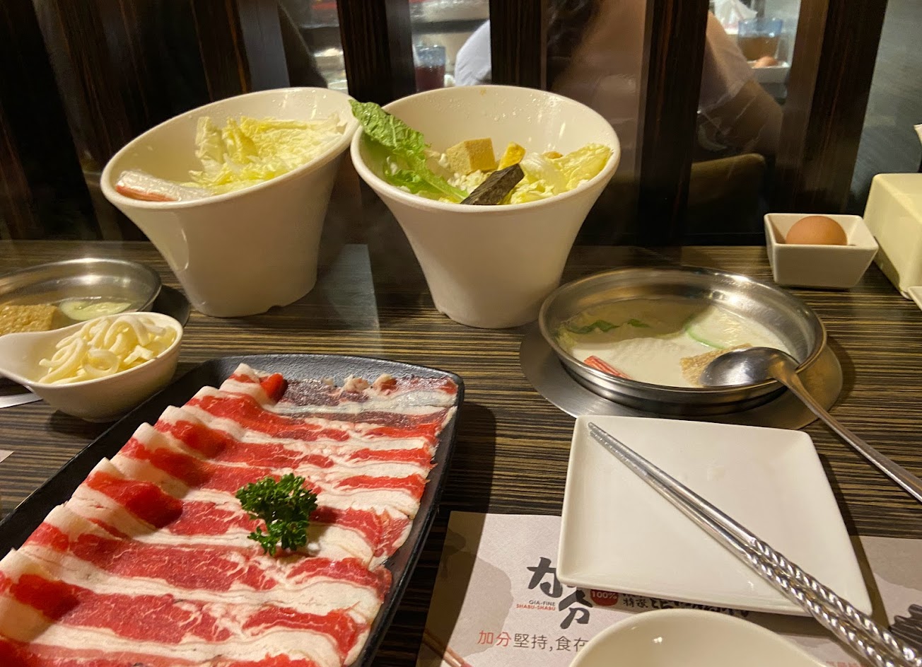 2021.10.16晚餐已訂位到現場時間到入場,每位服務人員都蠻親切的,這次點了3種鍋,麻辣跟昆布中規中矩,義式湯頭香濃點了3種不同牛肉,個人覺得最好吃是霜降牛光看油花分佈就很漂亮了,還會想再次去吃的店家。