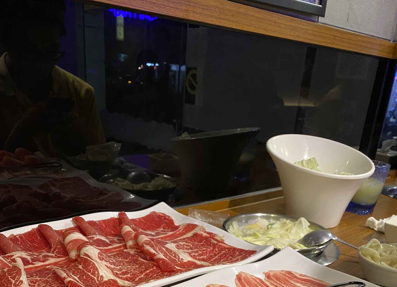 海陸雙拼的海鮮選擇蛤蜊,加分的蛤蜊大顆且煮完不會縮水又鮮甜,非常誇張的好吃,蛤蜊的鮮味在嘴中炸開,菜盤的部分不喜歡吃火鍋料可以換成高麗菜,要記得一到位置就跟服務生說,且要戴著口罩,這次忘記戴著有被提醒!