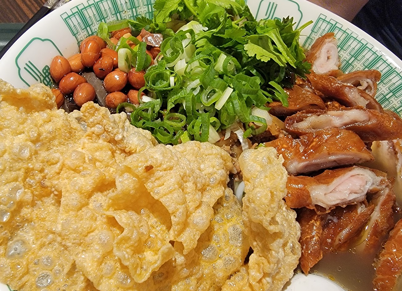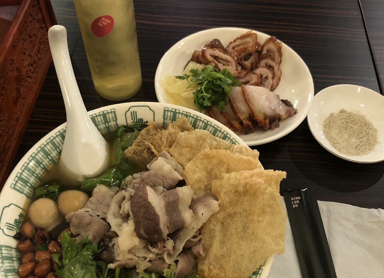 點小辣和小酸,味道沒有想像中難以接受,也不會有特別不舒服的酸臭味,算是滿好入口。滿滿一大碗,料很豐富,有脆脆的木耳、花生、炸腐竹,還有鵪鶉蛋、蔬菜,口感層次也很多,湯頭也不會太濃郁,蠻好入口。對一般食量的女生來說,可以吃得非常飽。