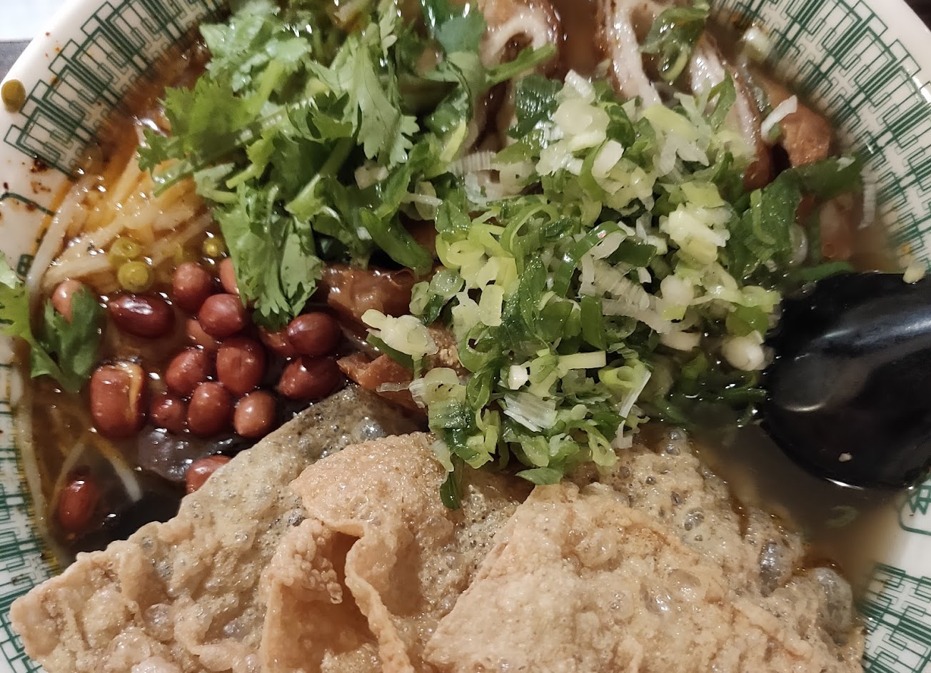 脆皮豬真的有脆,粉也有嚼勁,湯頭跟配菜的口味有調整成台灣人比較能接受的味道,不用怕太臭?辣度比想像中高,怕辣的人要小心~