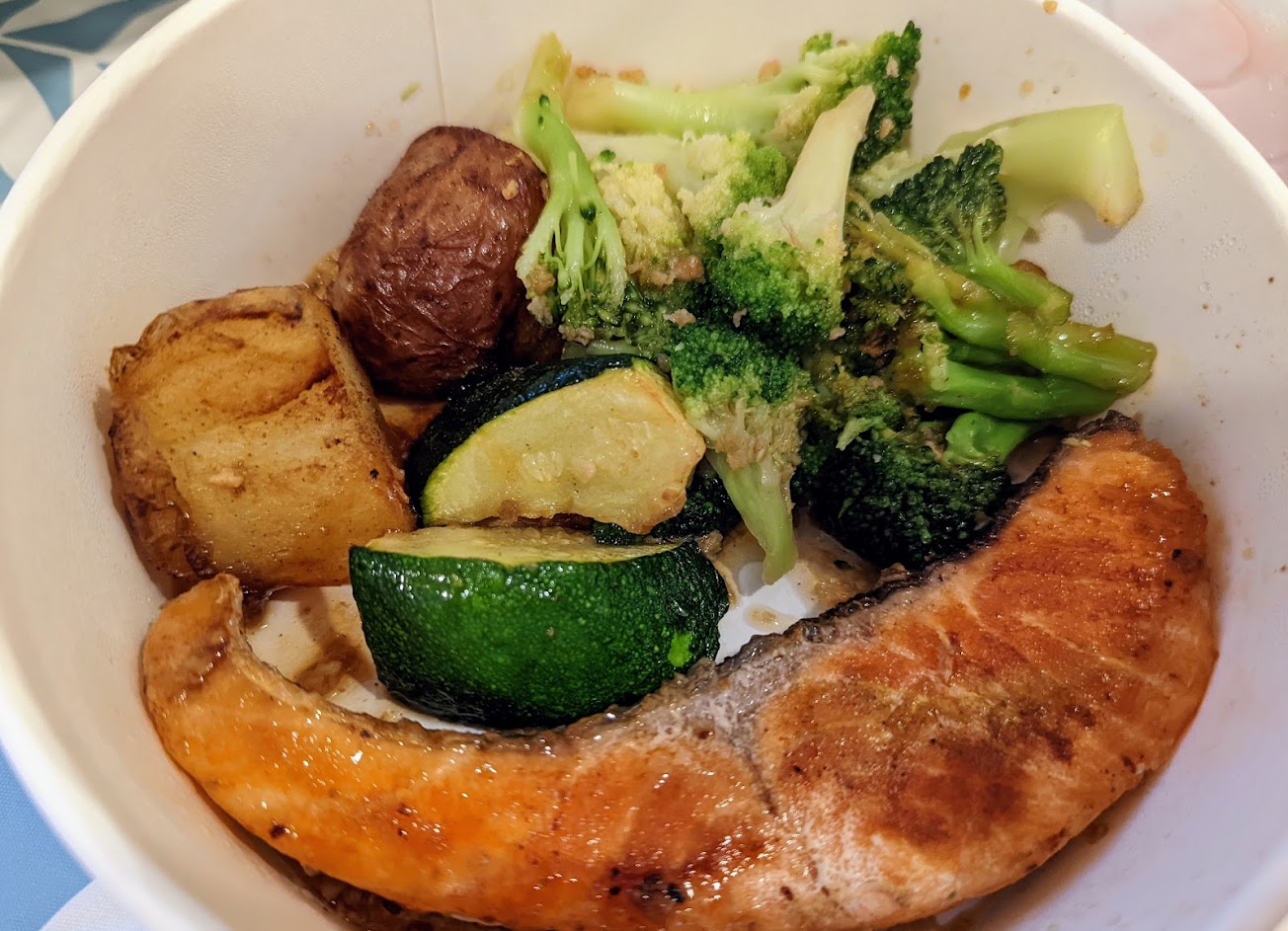 餐盒類蠻不錯 **肉的部分很讚** 我是點迷迭香雞&舒肥牛 調理的很入味又不會太鹹也不會味精太多 櫛瓜很新鮮很好吃