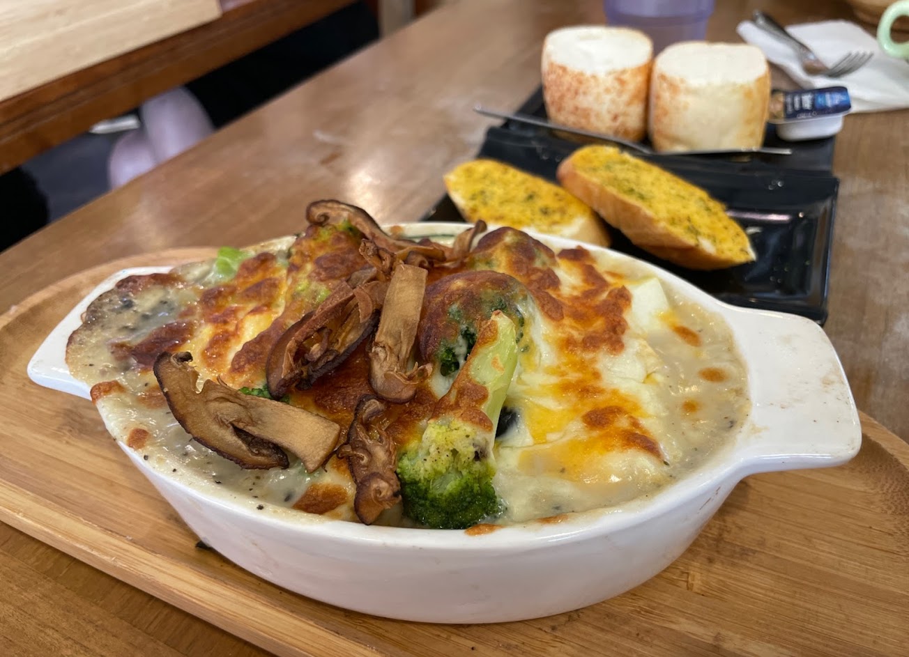 焗烤很香,但下方的筆管麵是水煮的沒有經過任何調味(無白醬),吃起來有點沒味道,總結來說整體份量偏小。