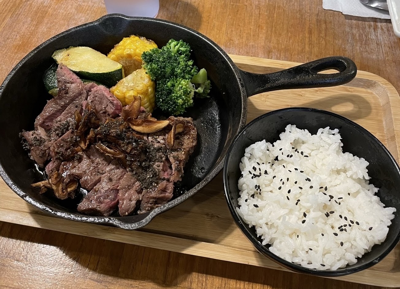 牛排份量不錯但旁邊的蔬菜也煮的太軟爛口感不佳