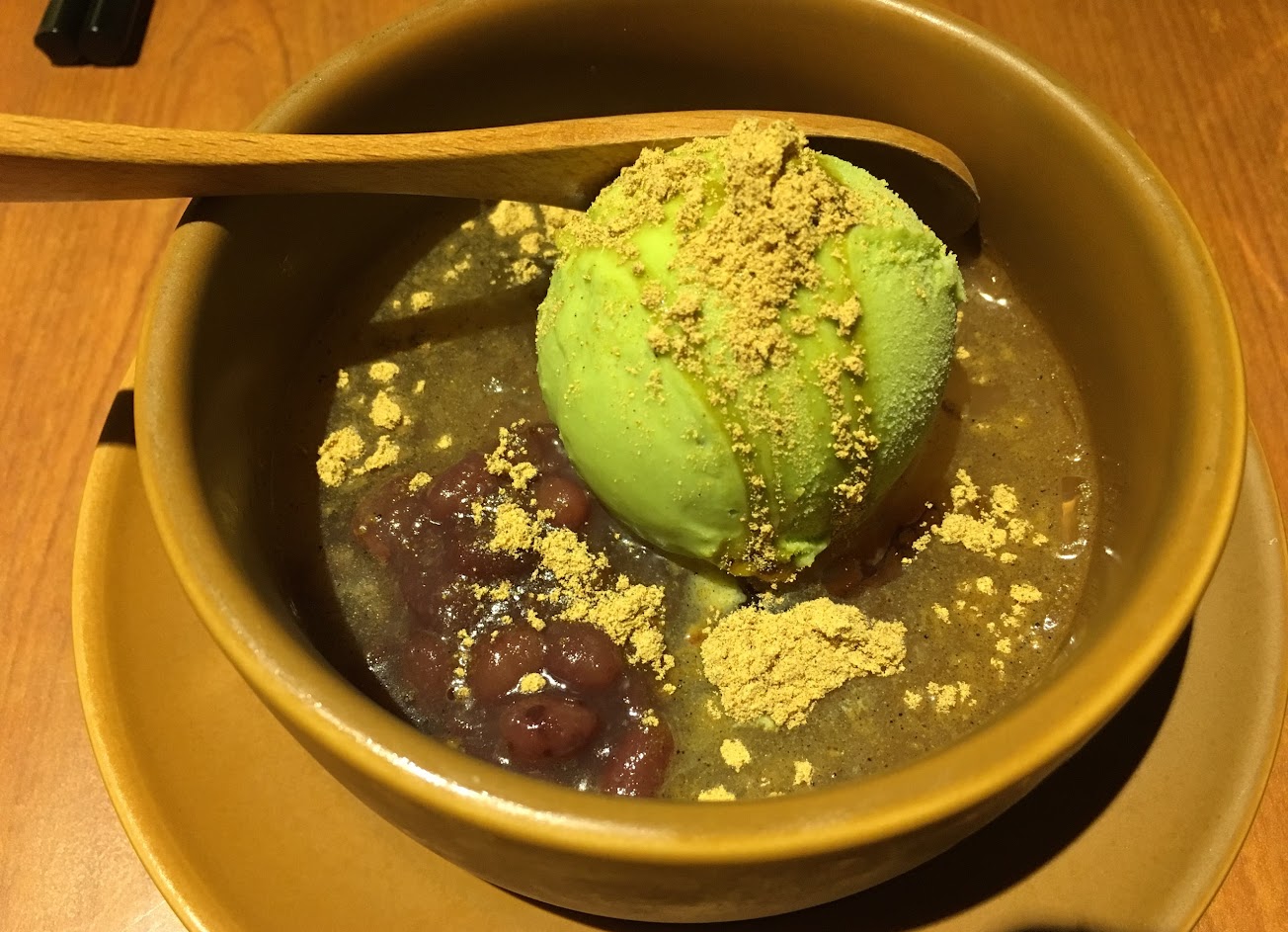豬排好吃 起士豬排起士香味 搭上豬排的脆口 真的很美味 可惜小菜有點少 但是那個抹茶紅豆也很棒 說甜不會太甜 搭上涼粉 有稍稍的降低了一點紅豆的甜膩 真的很不錯…