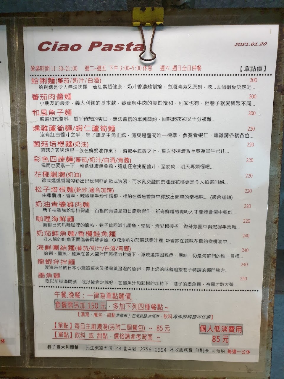2024最新在地推薦餐廳的菜單_巷子義大利麵的菜單、圖片