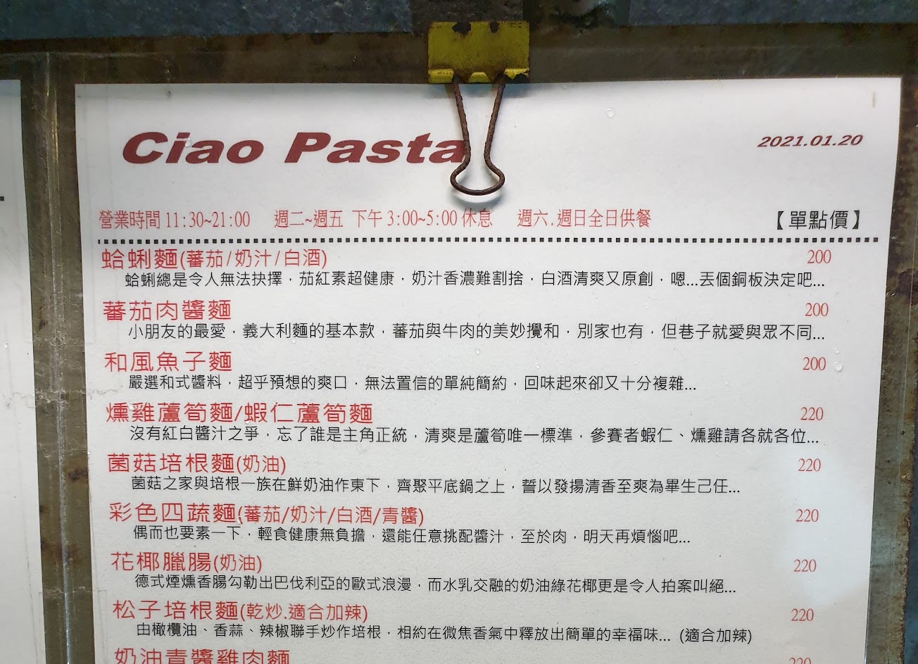 推薦一間在民生社區老字號的義大利麵小店「巷子義大利麵」? ☑️蕃茄肉醬麵 $250 ☑️白酒蛤蜊麵 $250